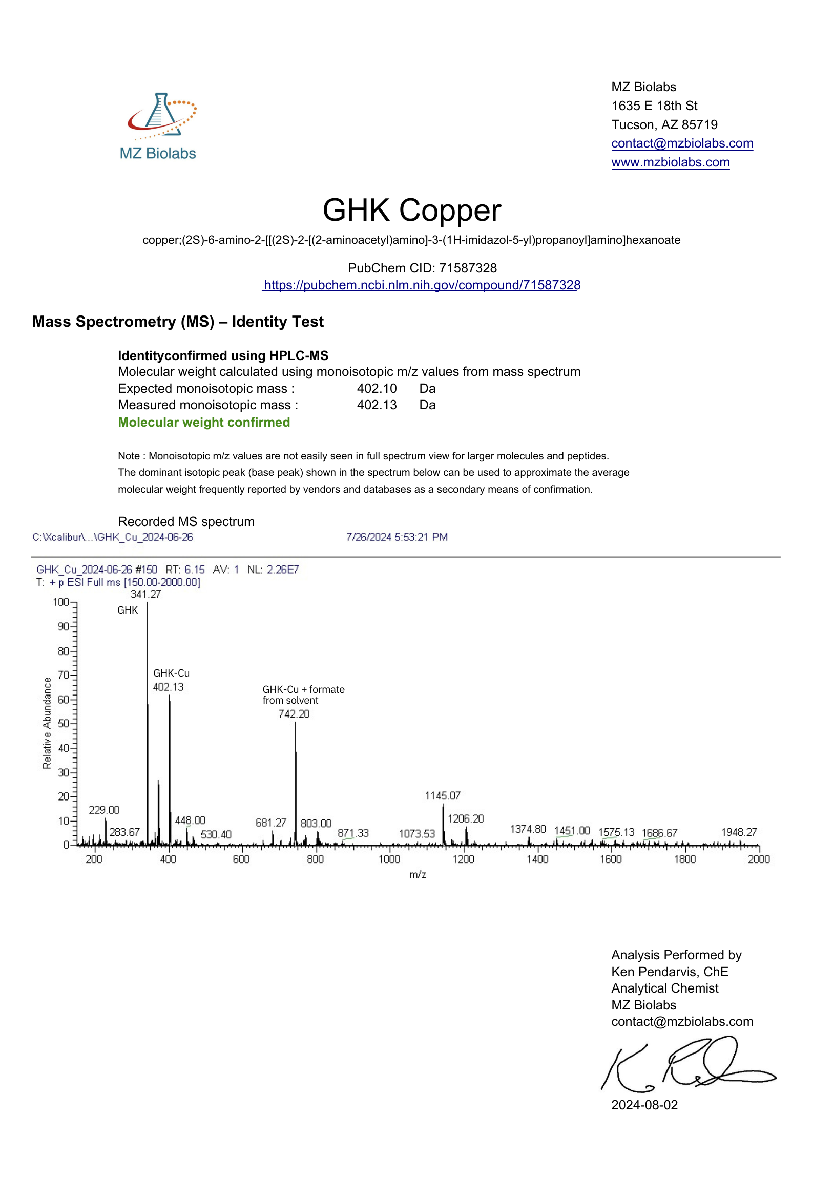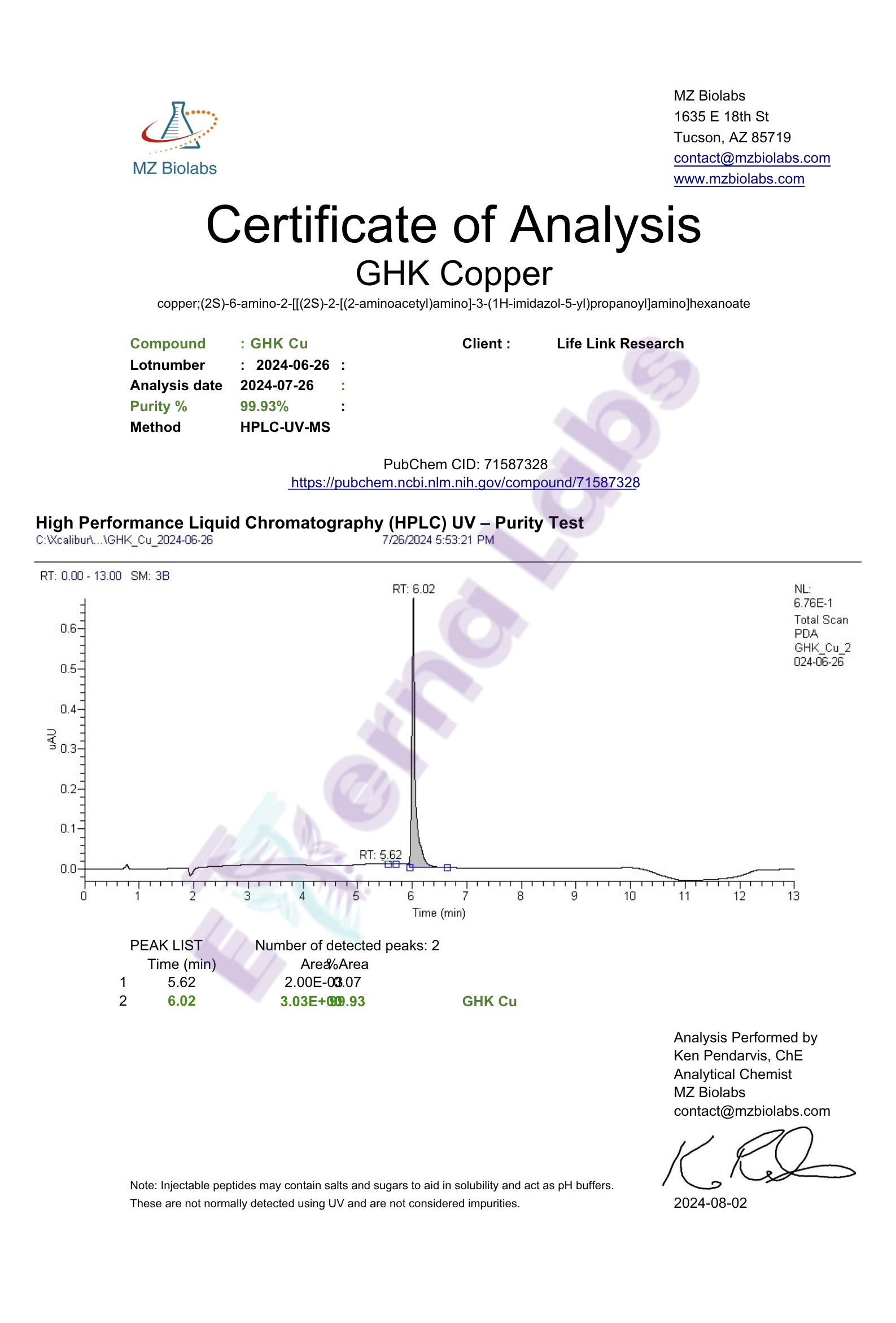 Sequence: Gly-His-Lys.Cu.xHAc